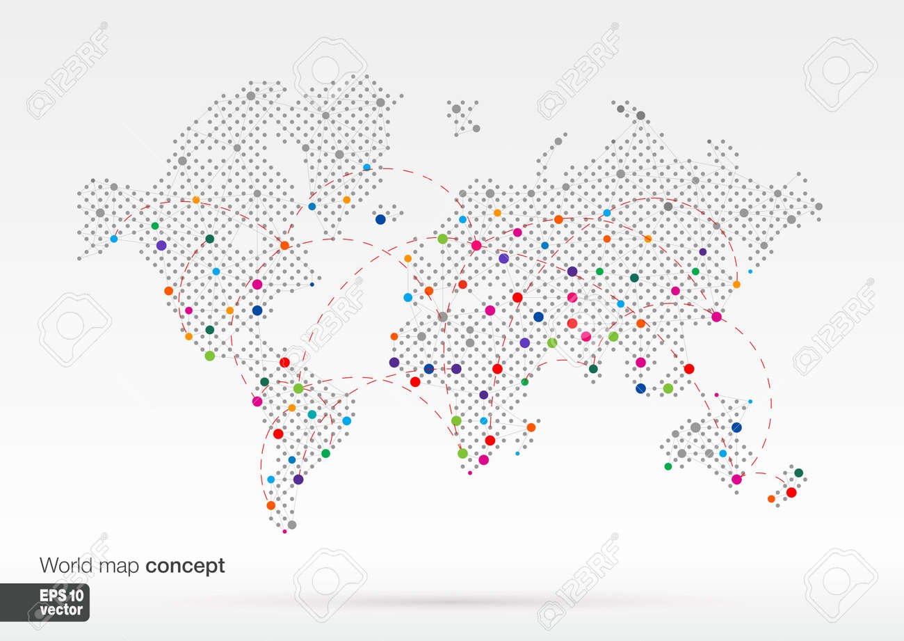 Vettoriale - Mappa Del Mondo Stilizzato Concetto Con Grande Città Globes Affari Illustrazione Vettoriale Sfondo Colorato Con Linee Di Comunicazione, Viaggi, Trasporti, Rete E Web Design Image 21730719.