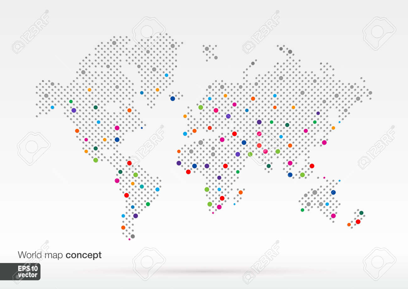 Pattern a punti mappa vettoriale del mondo. Silhouette stilizzata del mondo. Continenti sono evidenziate in colori diversi Immagine e Vettoriale - Alamy